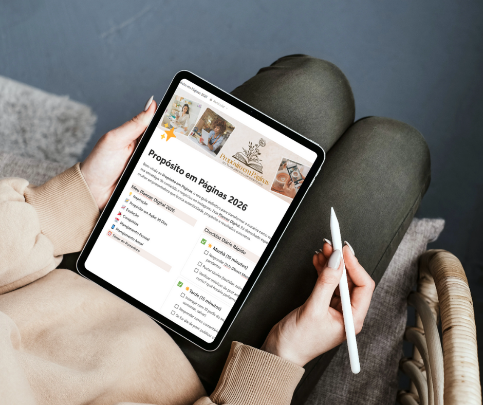 Não! O Propósito em Páginas 2026 é 100% Notion, uma ferramenta intuitiva e visual. Você recebe um link de acesso imediato após a compra e pode começar a usar em minutos.